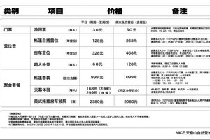 (1)营地介绍:NICE 天泰山自然营地,由体坛传媒集团股份有限公司旗下NICE GLAMPING品牌运营管理的⾼品质综合型露营地。坐落于北京市石景山区天泰山,营地距离城区仅30分钟交通圈,是一个备受欢迎的宗教旅游胜地和自然营地,能够俯瞰整个北京西部城市的美丽夜景,让您在这里尽情享受大自然和城市的双重美景。