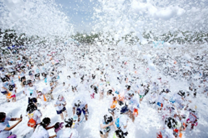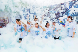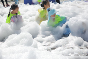跑步活动结束后,主办方在起终点设立了大型的泡泡嘉年华活动,泡泡趴(Bubble Party)被称为“地球上最开心的Party”,每年都有超300万人参加。C位出道的泡泡趴,所到之处,风潮无不席卷整个城市。活动应用的泡沫液中的泡沫专门为儿童研制,同时满足食品及儿童护肤品的双重标准,无刺激性气味,成分温和,中性配方,对人体无害,更有安全认证。在趣味的泡泡游戏中,孩子们猜想着、体验着、思考着、尝试着,同时也在快乐着、收获着、成长着。