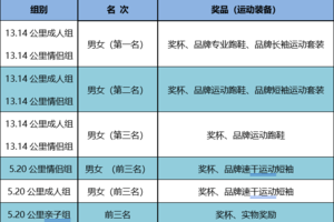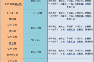 活动项目:13.14公里单人组、13.14公里情侣组、5.20公里单人组、5.20公里情侣组、5.20公里亲子二人组、5.20公里亲子三人组