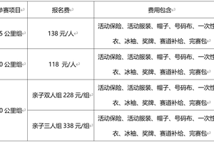 活动项目:15公里组、10公里组、10公里亲子二人组、10公里亲子三人组