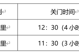 活动整体结束时间:12:30 关门时间具体见下表(以发令的枪声时间为准):