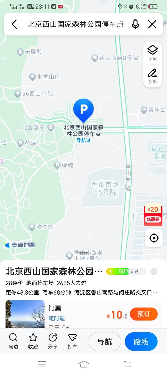 自驾出行:导航西山国家森林公园停车场,步行66米即到活动起终点