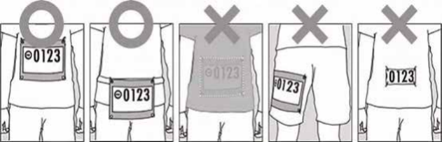 将芯片号码布正确佩戴在胸前;